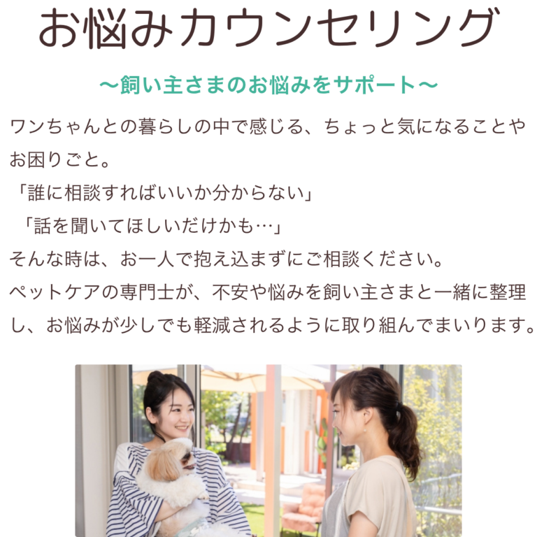 ・飼い主さまご自身の心身的な疲れや不安についてもご相談いただけます